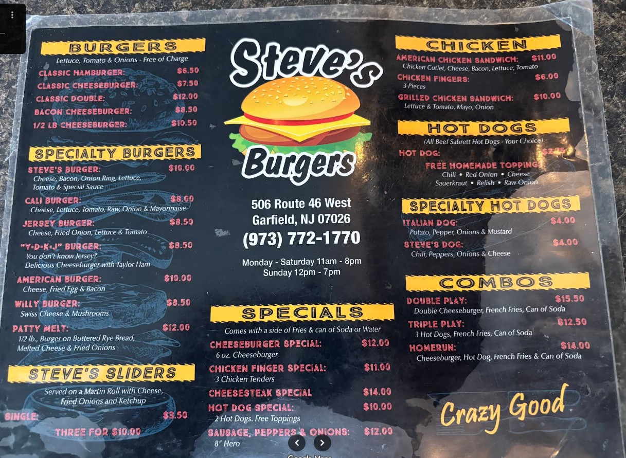 Welcome to Steve's Burgers, where we serve up the best burgers, cheesesteaks, and classic American diner dishes in Garfield! Whether you're craving a juicy burger or a flavorful cheesesteak, our menu has something for everyone. We pride ourselves on offering fresh, quality ingredients and friendly service. Enjoy a relaxed dining experience with us, whether you're here for a quick bite or a leisurely meal. Stop by and discover why we're a local favorite!
